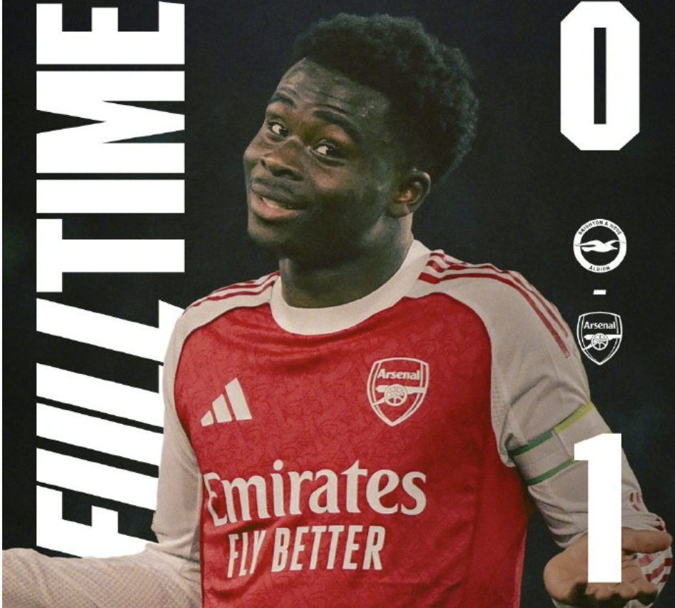 另一块场地上,阿森纳则踢得非常稳健。第9分钟,萨卡在左路带球后横向内切,然后远距离兜射,皮球打在防守人身上有一个变线,门将猜错方向,阿森纳1-0领先。这是全场比赛的唯一进球。